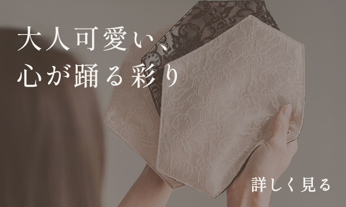 いつもはセクシーなランジェリー、エレガントなレースの下着を纏うあなたが、ナプキンになると違和感を感じてしまうのはなぜ?ナプキンだから仕方ない?その“あきらめ”は、気づかぬうちに自分の心に返っていくから。たとえば、ナプキンも大好きな彼に見られても“私”を感じてもらえるものを選ぶことができたら、私たち女性の幸せの瞬間が増えていくと考えます。